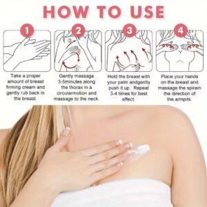 - Take an appropriate amount of cream, apply gently on the breasts and spread in circular motions.