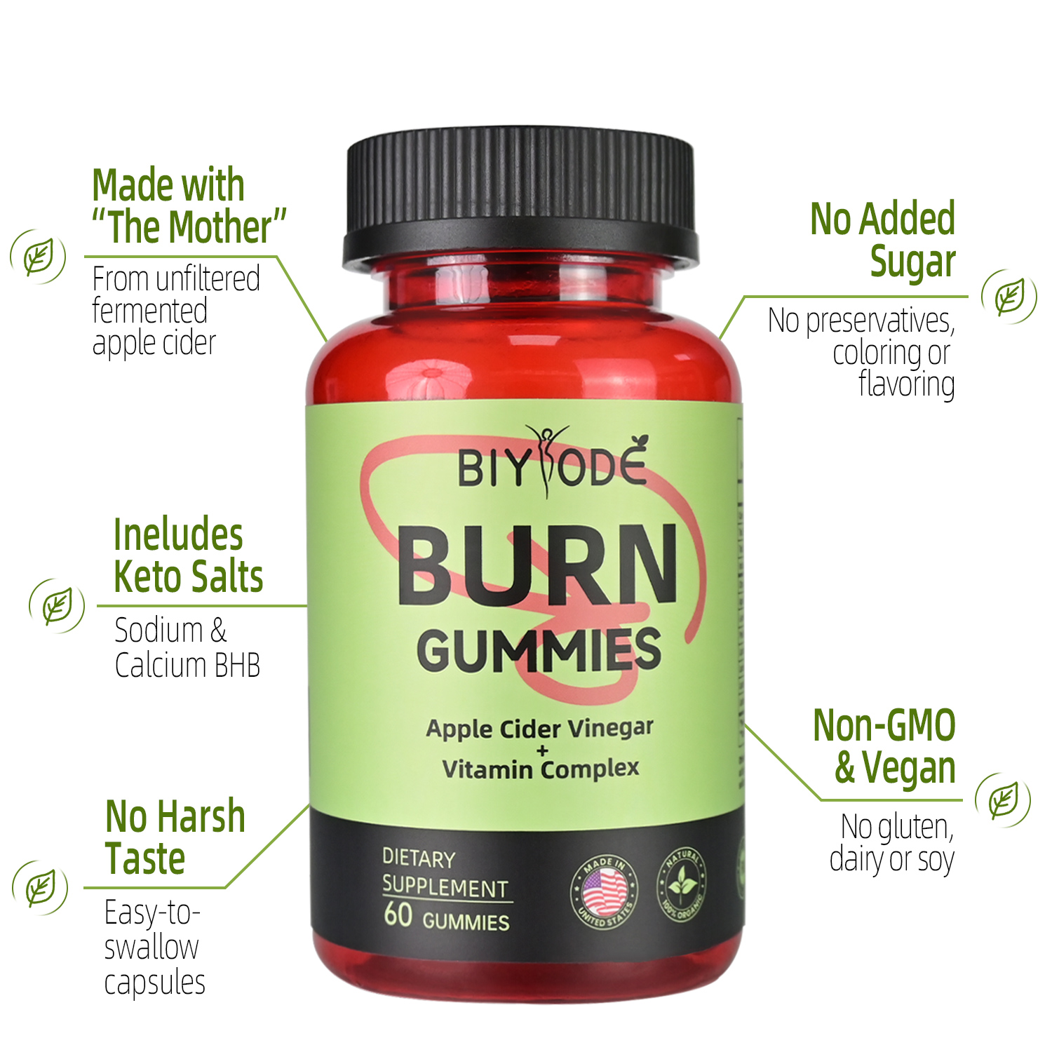 - Natural Apple Flavoring: Infused with pure natural apple essence to neutralize the sour taste of apple cider vinegar. The gummies feature a sweet, sour and chewy texture, eliminating the harsh irritation of traditional liquid apple cider vinegar.
